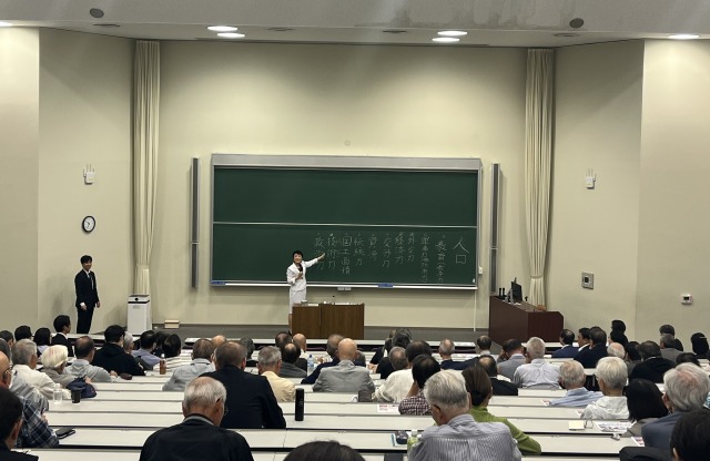 10月に自民党の4役の一角である総務会長に就任したばかりの有村治子氏をお招きし、「日本の主権を守るために」と題したご講演をいただきました。明快で力強いメッセージは、受講者128名全員の心を惹きつけました。